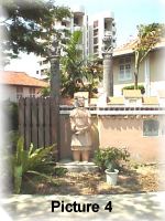 A house with the back of the house diagonal facing a main road with high traffic movement. There is `adverse sha' directed at the back of the house:- 1. Picture 1 is taken diagonally opposite across from the traffic junction:  2. Picture 2 is taken at the `red light' crossing opposite the same house:  3. Picture 3 is taken at the pedestrian crossing near the same house:  4. Picture 4 shows a close up of the backwall of the same house:  Notice that the owner placed a `Chinese warrior" with two tall lion statues to guard the back portion of the house? Is the owner is trying to protect his house from `adverse sha' coming from the main road intersection? 5. Picture 5 shows the same house but from the front. Do you see two "Chinese warriors" guarding both sides of the main gate? On the left, the owner planted a few trees to shield the left side of the house which has a main road running parallel beside it.